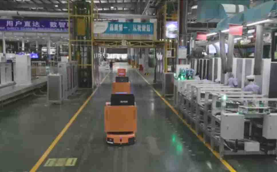 为车载冰箱物流配送打造的智能解决方案,,包含产中物流通过潜伏举升AMR搬运至线边,,,,产后成品物流智能仓储,,,流程包含产中物流智能齐套入库,,,线边安灯叫料AMR智能配送至线边,,,成品入库、、、出库,,,通过无人堆高车机器人,,,,智能仓储管理替代人工作业管理,,实现更高存储、、、、更高效率、、更具柔性化的解决方案。。。。